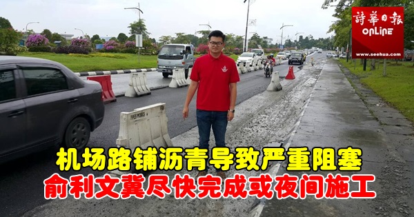 (古晋20日讯)古晋机场路(古晋国际机场附近)正进行铺沥青的道路提升工程,导致相关路段出现严重阻塞现象。