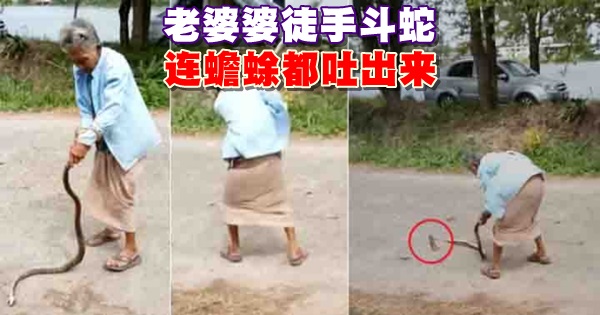 泰国一名74岁的阿婆胆量过人,她徒手拿起一条2公尺多长的蛇猛力拍向地面,力道之大,让蛇把已吞下的蟾蜍也吐出来,直到蛇死亡她才停手。路人将阿婆徒手斗蛇的勇猛行为拍下,引来网友热烈讨论。