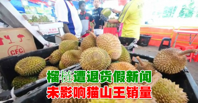 (新山24日讯)隨著近日在社交网站上流传指我国猫山王品种榴槤因农药超標而遭中国及新加坡退货,结果被迫以低价出售的假新闻后,受访的新山榴槤摊贩访纷表示,这次假新闻事件並未对新山榴槤市场造成太大影响,也没出现低价拋售情况。