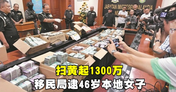 (亚庇28日讯) 移民局逮捕一名46岁本地女子,以调查日前起获的1300万令吉鉅款的来源。