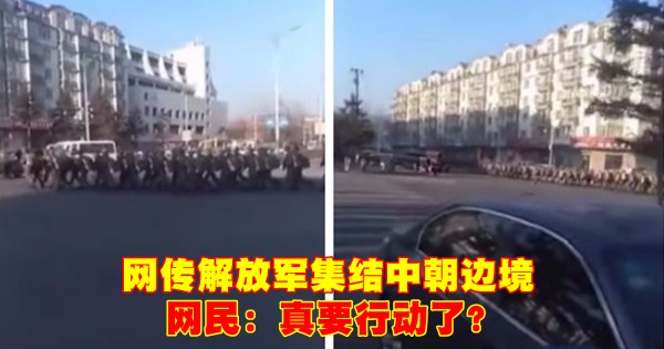 朝鲜半岛局势不稳之际,网路近日流传一段影片显示,有解放军出现于中朝边境吉林省,大批士兵一边士气高昂的高唱军歌,一边行军前往某处,最后拍摄者被军方人员制止后才结束画面。