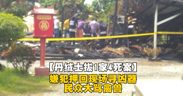 (丹绒士拔16日讯)「丹绒士拔杀人纵火4死案」,警方今早押著聋哑男嫌犯返回案发现场,寻找凶器及重组案情;一名相信是死者亲属的男子,看到男嫌犯时指著他破口大骂,情绪一度激动地蹲著哭泣。