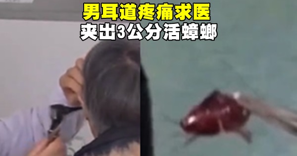 据《看看新闻》报导,中国上海奉贤区的而鼻喉科诊所,来了一位35岁男病患,称耳道内部疼痛,医生检查后发现,有一只长约3公分的活蟑螂在男子耳道内,医生先用酒精以及滴耳油让蟑螂麻痹,然后再把蟑螂夹出来,夹出来时蟑螂前面的触角还在往鼓膜里面伸,不过幸好夹出来后,触角没留在鼓膜上。
