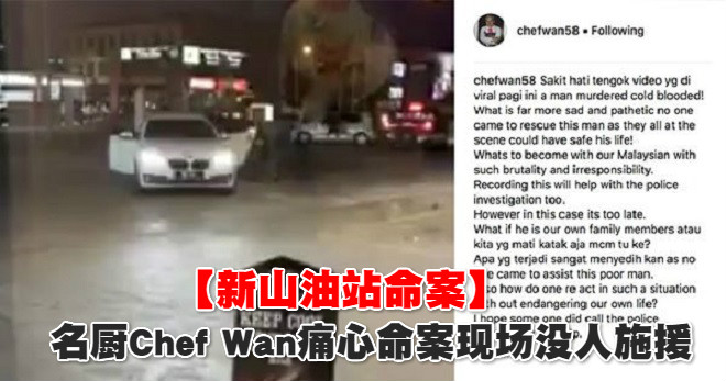 (新山19日讯)「新山彩虹花园油站杀人事件」中,凶徒的冷血令大马名厨旺师傅(Chef Wan)深感痛心,更令他感到难过及痛心的是,现场民眾袖手旁观,没有伸出援手的態度。