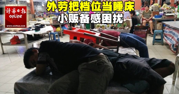 砂拉越民生 外劳把档位当睡床 小贩备感困扰 2017年12月27日 疑是外籍劳工把珠巴十号路菜市场当睡床,清晨来营业的小贩备感困扰,希望当局关注。Advertisement 据小贩反映,近来有多位流浪汉在他们的档位上睡觉,使他们在清晨来营业时都备感不便,如果叫醒他们离去又怕受攻击,如果不叫醒他们离去却又无法开档。 小贩称,虽然珠巴十号路小贩中心有篱笆,并在夜间锁上,但流浪汉及醉汉还是能潜入,在档位上呼呼大睡。 这种遭潜入的情况时常出现,如果没有偷窃或破坏小贩的货品还算幸运,但小贩希望能加强保安。
