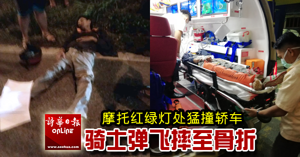 (本报古晋30日讯)在红绿灯处和车子发生碰撞,骑士弹飞砸向挡风镜结果身受重创,被紧急送往古晋砂中央医院急诊部。