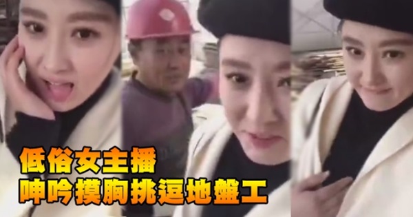 这段长约2分钟的影片可见,该名女主播走到一处工地,发出呻吟声及做出摸胸等动作,挑逗身后的工地建筑工人,内容极度低俗。