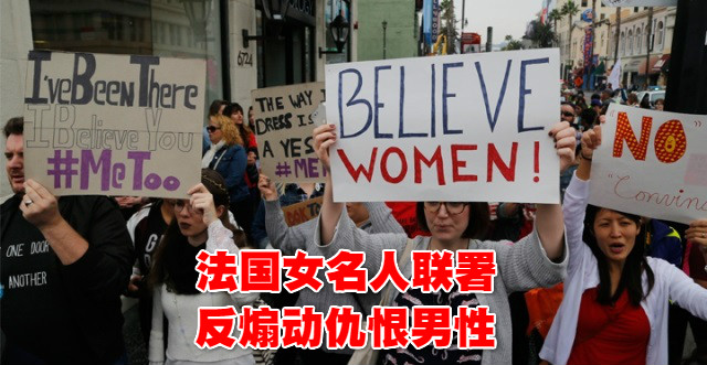 法国女作家、艺人、学者等100人在刊於《世界报》的信件指责,这股自揭遭男人性侵或性骚扰的热潮是「鼓吹將男性送入屠场,对女性自主没帮助,却助长与性自由为敌的极端宗教人士」,形同推广「清教主义」,威胁性自由。