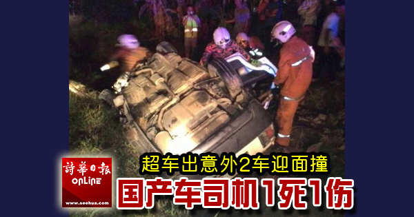 砂拉越北砂 超车出意外2车迎面撞 国产车司机1死1伤 2018年1月14日 (本报美里14日讯)疑超车不遂迎撞逆向轿车,肇祸司机重伤身亡!Advertisement 这起死亡车祸昨天傍晚6时许,在沿海大道甘榜可鲁力路段发生。 据悉,44岁死者麦克阿纳尤林当时驾着国产花蝴蝶轿车,从民都鲁方向朝美里前进,途经上述路段时疑试图超车不遂,结果丧失生命。 当时,花蝴蝶轿车与逆向道驶至的国产车迎面撞击,车子冲出公路翻覆,死者夹困车内。 消防员较后将车体撬开抬出时,死者因受重创毙命现场;另一辆国产轿车的司机朱力宾摩罗(59岁)则腹部受伤,由救护车载往美里中央医院治疗。