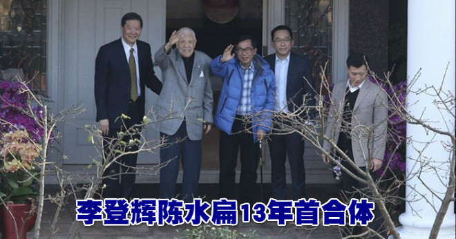 (台北15日讯)台湾前总统李登辉周一庆祝95岁生日,正在保外就医的另一名前总统陈水扁,专程从高雄北上,为李登辉贺寿。亲如父子的李登辉与陈水扁在2005年闹翻,这是两人13年后首度再度会面。