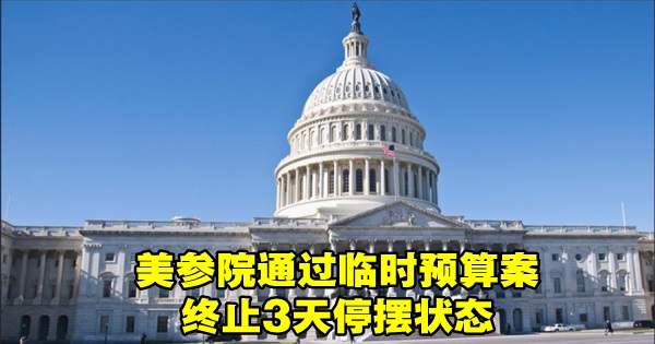 美国参议院克服激烈爭执,一致通过一项临时预算法案,以终止联邦政府3天来的停摆状態。