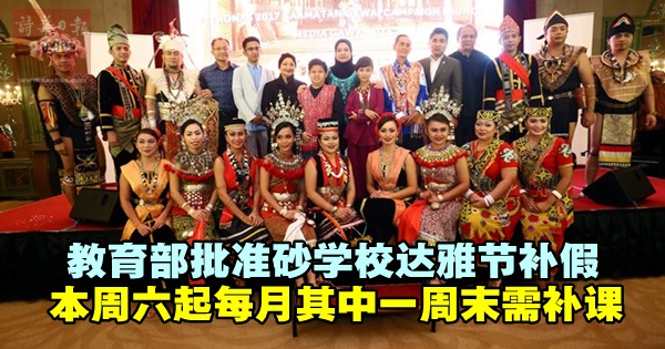 (本报美里25日讯)砂州学校获得大马教育部批准达雅节补假,从本周六起,连续接下来每个月其中一个周末要补课,共5天。