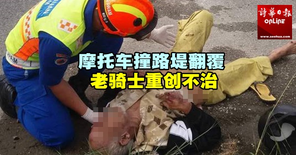 (本报古晋25日讯)摩托车撞路堤翻覆,老骑士当场重创昏迷,送入急诊部红区抢救,惟仍告不治身亡。