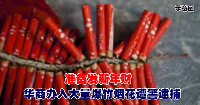怡保一名华裔男子瞄准年关迫近,办入大量爆竹及烟花准备大发新年財,惟却遭怡保警方先行一步逮捕,同时充公50种价值约5万令吉的爆竹及烟花。