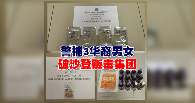 (沙登30日讯)沙登警方肃毒组根据可靠情报,前后逮捕3名本地华裔男女毒贩归案,並起获各种毒品,成功一举捣破活跃在沙登地区的贩毒集团!