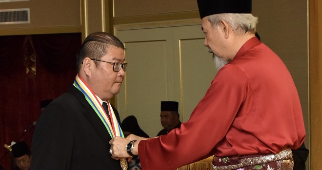 亚庇31日讯|沙巴马中联谊协会秘书长廖志国在州元首敦朱哈64岁华诞册封有功人士榜上有名,今在州元首府受封神山效忠勳章(ASDK)。