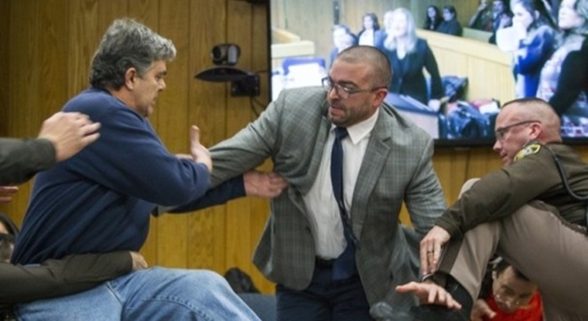 美国国家体操队前队医纳萨尔(Larry Nassar)长年假借治疗,性侵上百名女性,他周五(2日)出庭应讯时,有被害人的父亲于作证后,按捺不住怒火,企图冲上前袭击纳萨尔,结果被法警压倒在地、上铐带走。