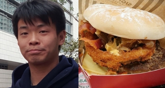 苦主林荣桂称,他当天在香港荃湾绿杨坊分店买了两份「洋葱圈安格斯」套餐及其他食物,拿回车厂与同事享用。