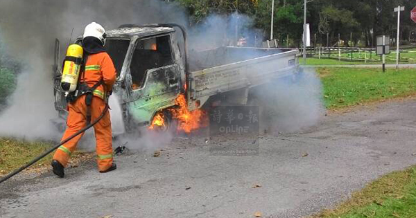 砂拉越北砂 3吨罗里 无故起火燃烧 2018年2月12日 (本报美里12日讯)3吨罗里突然起火,消防员虽然赶到将火势扑灭,但罗里已被烧成废铁。Advertisement 美里消防与拯救局今早10时34分接获警察总部电话,即派消防员前往师训学院后巷展开灌救。 消防员抵达现场时,该辆罗里已陷入火海之中。 虽然很快控制火势,无奈车体已烧毁,变成了一堆废铁;至于失火原因,消防员尚在调查。
