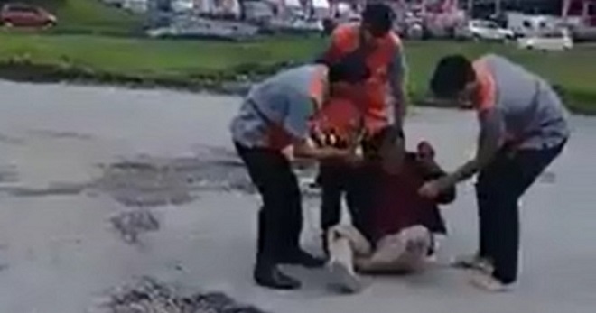 他说,当匪徒乘上另一名在外负责把风的同伙摩哆后准备逃离现场时,摩哆撞上水坑,后座匪徒跌落地面,遭从油站商店追出来的3名员工死命抓住。