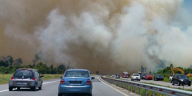 汶莱 草丛野火影响视线 高速公路关闭 2015年3月22日 莫蒙绕道通往诗里亚市路旁草丛发生野火,浓烟弥漫,严重影响驾车人士的视线。 (马来奕22日讯)由莫蒙绕道通往诗里亚的主要高速公路旁多处草丛发生野火,浓烟弥漫,严重影响驾车人士的视线。Advertisement 消防车抵达现场准备灭火。 由于路旁的草丛着火,烟雾导致公路的能见度低,危及道路使用者,警方特将该路段暂时关闭,直到消拯人员把野火扑灭为止才恢复正常通车。 警方吁请道路使用者,从莫蒙通往诗里亚的旧路行驶以策安全。