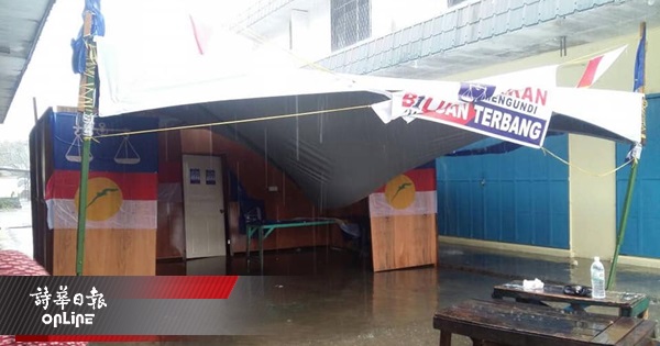 在西加麦二哩甘榜布吉斯一间甘榜屋顶今午遭暴风掀开,锌片被吹落。设在附近一哩处的一座大选行动室也被大风吹得东摇西倒。