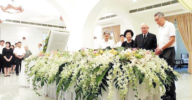李光耀遗体將在斯里淡马锡(Sri Temasek)总理官邸停柩2天(23日至24日),举行家庭私人丧礼,过后將移到国会大厦,25日至28日开放民眾前去瞻仰。国葬將于本月29日,下午2时,在国大文化中心举行。