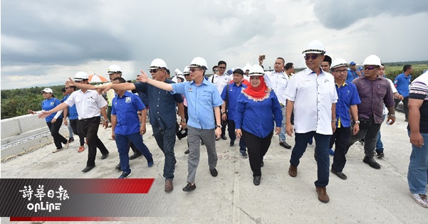 砂拉越南砂 峇当三马拉汉大桥达雅节前启用 2018年5月2日 (古晋2日讯)耗资约9400万令吉兴建的峇当三马拉汉大桥预料于今年达雅节起前就能正式启用!Advertisement 据了解,目前该工程进度已达97%,若能顺利通过于本月进行的稽查程序,全长774米的单程双向大桥就能于6月1日前供民众通行。 影片为联邦工程部长拿督法迪拉尤索夫,在原任三马拉汉区国会议员鲁比雅及阿沙再也区州议员拿督阿都卡林的陪同下,巡视峇当三马拉汉大桥。