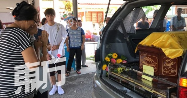 死者灵柩今早11时出殯至怀恩园进行火化,其生前好友及亲戚皆陪同在侧。白髮人送黑髮人的死者母亲黄秀方在棺木移到灵车后捨不得地地往棺木注视,一度哭成泪人,需要旁人搀扶。