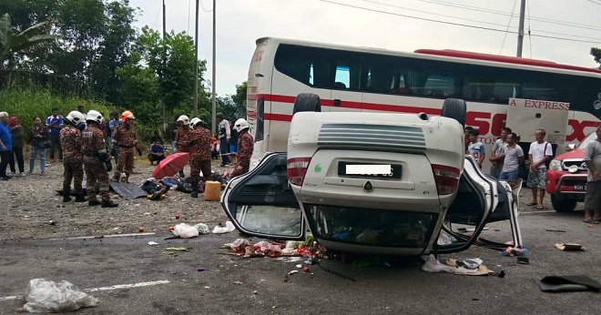 这起恐怖车祸,是于17日下午约2时,在兰瑙-都鲁必公路第39公里,靠近甘榜勿里索的路段发生,造成国产宝腾赛佳车内4名人士当场丧命,后座的2岁女乘客,在送院过后不治身亡。