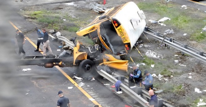 新泽西州州长墨菲新闻发布会上表示,这起事故於当地时间早上10时20分发生,巴士上载著38名学生及包括司机在內的7名成人。