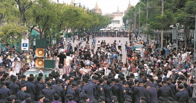 自本年起,曼谷时不时发生由年轻一辈举行的反政府示威,他们不满国內贪污问题严重,而且大选日期一拖再拖,部份示威获支持塔辛的前「红衫军」成员参与。