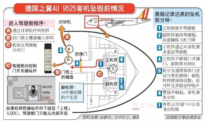 法国检方调查惊人发现,坠机发生前,正机师被锁在机舱外,副机师卢比茨刻意操控飞机下降,相信他是故意坠机的。