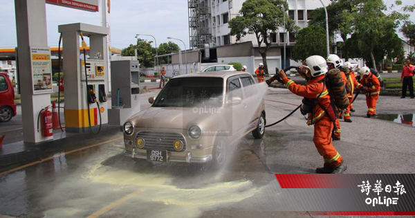 位于布律克路处的蚬壳加油站Emparia有限公司,今早特办一场演习活动,以教育员工们在遇到此类紧急状况时,如何应对。
