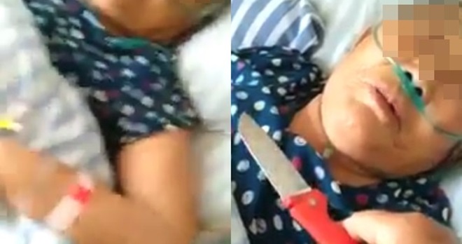 脸书专页日前PO出一段影片表示,一名疑似使用江苏沭阳县口音的女子,在医院内拿水果刀逼问躺在床上、插着鼻管的老母亲讲出有几张提款卡、户头共有多少钱。