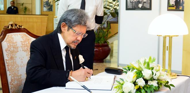 较早时,汶莱外交和贸易部长本基兰莫和末波基亚亲王,也在今日启程前往苏柏路的新加坡最高专员署,在吊唁簿上签名,并在新加坡驻汶莱最高专员署中参观专员署为新加坡第一任总理李光耀所设的生平事迹展览专柜。