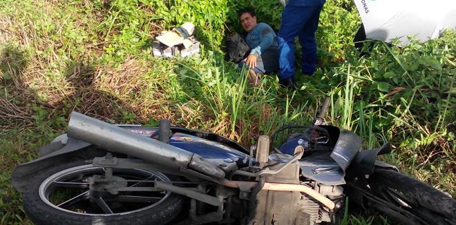 (本报古晋28日讯)摩托车越车时与转入路口的四驱车碰撞后,连人带车撞入路边草地,左脚骨折送来急诊部接受治疗护理。
