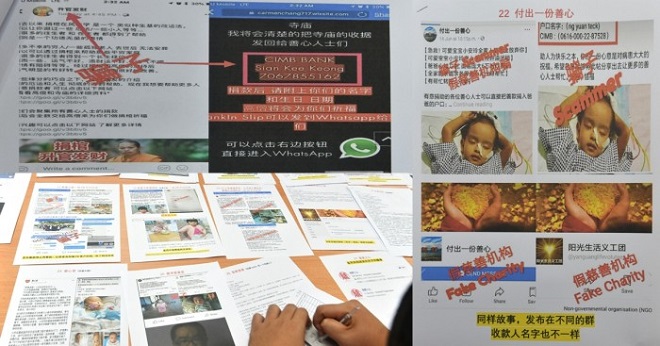 他指出,就连报馆的慈善组织名字也被盗用,利用原本的筹款新闻附上假的银行户头,包括去年闻名全国的「小锦鸿事件」,儘管小锦鸿已在去年9月离世,仍有专页于本月转载此新闻并要求捐款。