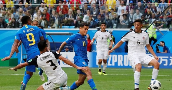 (圣彼得堡22日综合电)夺冠大热门、五星巴西在週五的次轮小组赛,靠著伤停补时2个进球,以2比0击败「加勒比海盗」哥斯达黎加,终於在世界杯E组打破胜荒。