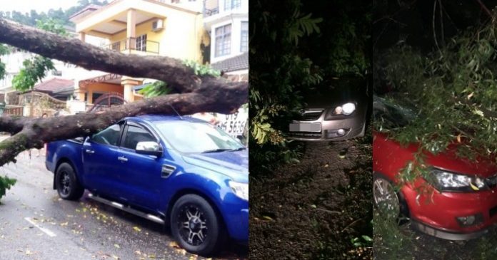 雪州消拯局一名发言人今早表示,昨午5时许突如其来的豪雨,导致安邦地区多处出现积水,其中就有5处出现大树倒塌事件,导致共4辆轿车及四轮驱动车被压损,同时一人受伤。