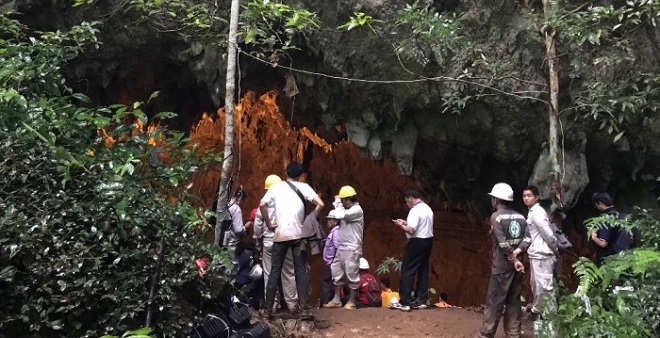 警方立即展开搜救行动,但因当地刚下过一场暴雨,洞穴內溪水暴涨,军方周日晚紧急调来18名蛙人,周一清晨6时进入洞穴下水搜救。