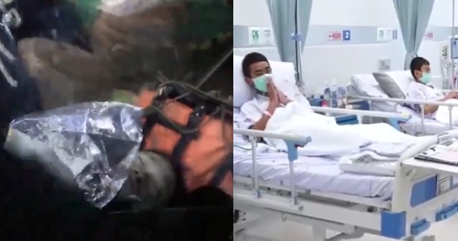 泰国政府公关部门公布7分03秒的救援影片,同时也公布获救少年在医院内接受治疗的影片,每一位少年看起来情况都很好,还有人对着镜头比出V字、合十等手势。另外有不少亲友隔着隔离窗在病房外探视。