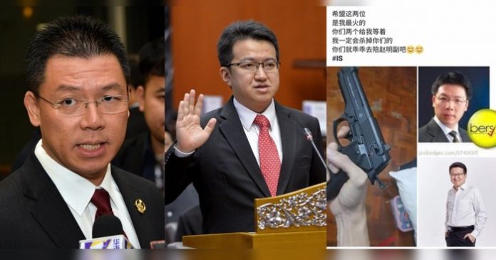 有网民19日在面子书群组上发帖,恫言將要对新上任的国防副部长刘镇东及国会下议院副议长倪可敏下手,愤怒指要「杀」了2名行动党领袖,並附上2人头像及一把手枪的照片。