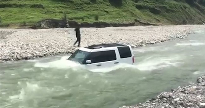 四川成都一名车主,日前为了节省20元人民币(约11令吉)洗车费,将百万人民币(约60万令吉)的Land Rover越野车开到河边清洗,没料到遇到上游水闸放水,湍急河水就把车淹没了!
