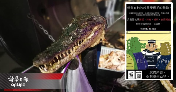 (本报古晋9日讯)马来西亚世界自然基金会及马来西亚自然协会古晋分会联合呼吁,停止展示在古晋美食节中售卖及整只被烧烤的鳄鱼照。