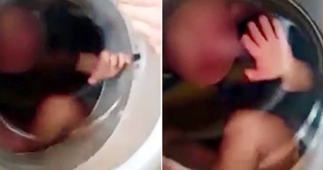 波兰一名2岁男童日前被关在一部滚筒式洗衣机内,惊慌失措、边哭边拍打机门哀号求救。