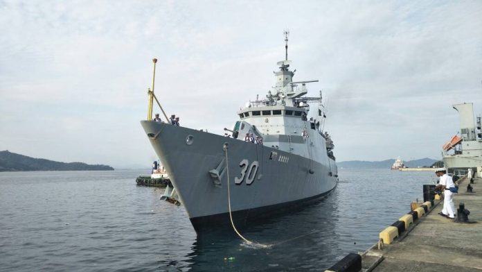 参与全球最大规模多国海上军演环太平洋海上联合演习(Rimpac)近3个月的我国海军巡防舰叻久号(KD Lekiu),今早「学成归来」回到实邦加母港。