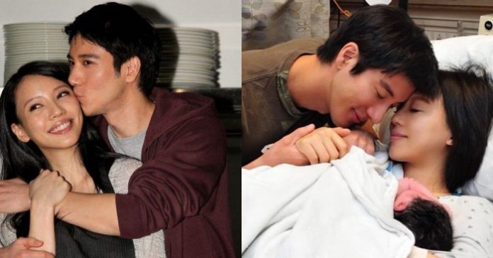 王力宏晒出李靚蕾抱著宝宝的照片,自己深情贴著妻子的额头,画面十分幸福。