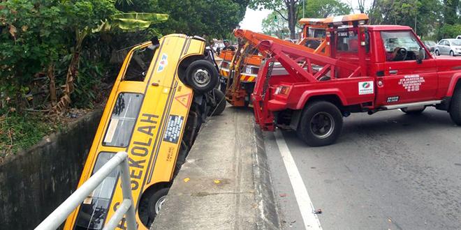 这起三车连环车祸,也导致该段公路陷入瘫痪状态,交警接获投报后马上赶抵现场展开调查,以及把沟渠中的学生巴士安排拖起后才恢复交通顺畅。