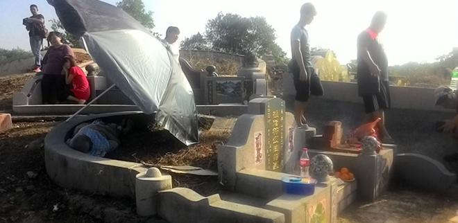 这起事件发生于今早7点左右,78岁华裔老翁携带儿女及孙子前往该义山进行扫墓,不料老翁在家父坟墓上清理杂草时,突然晕倒,后脑著地,跌倒在该坟墓上。